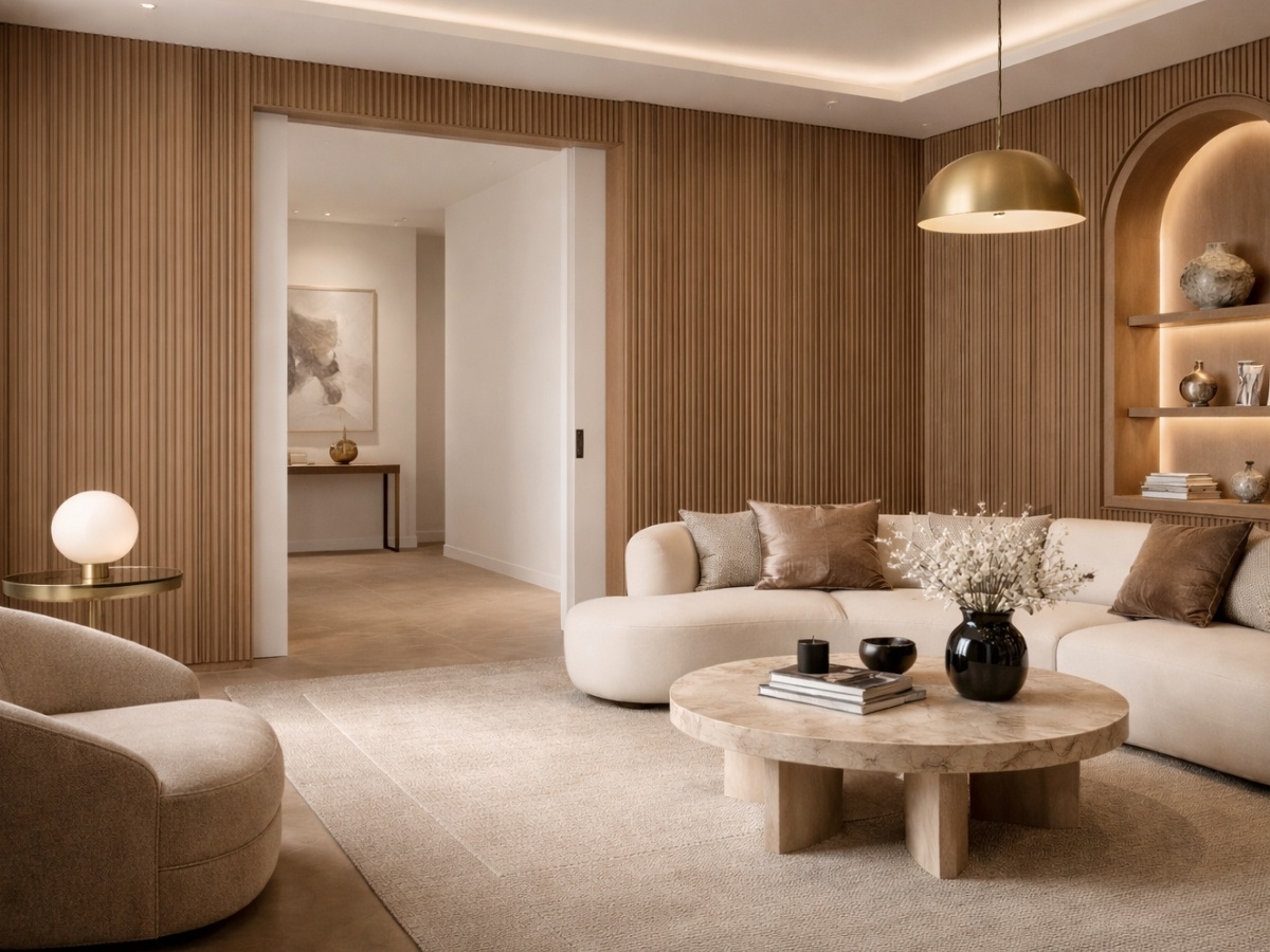 Nelle finiture si affermano superfici opache e morbide al tatto, capaci di assorbire la luce e creare atmosfere avvolgenti; negli ambienti più luminosi, invece, brillano laccature lucide e superfici riflettenti che donano eleganza scenografica.
